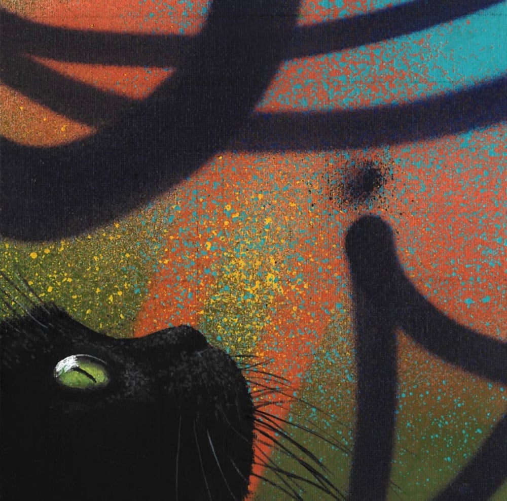 Spray paint and acrylic and pens on canvas.